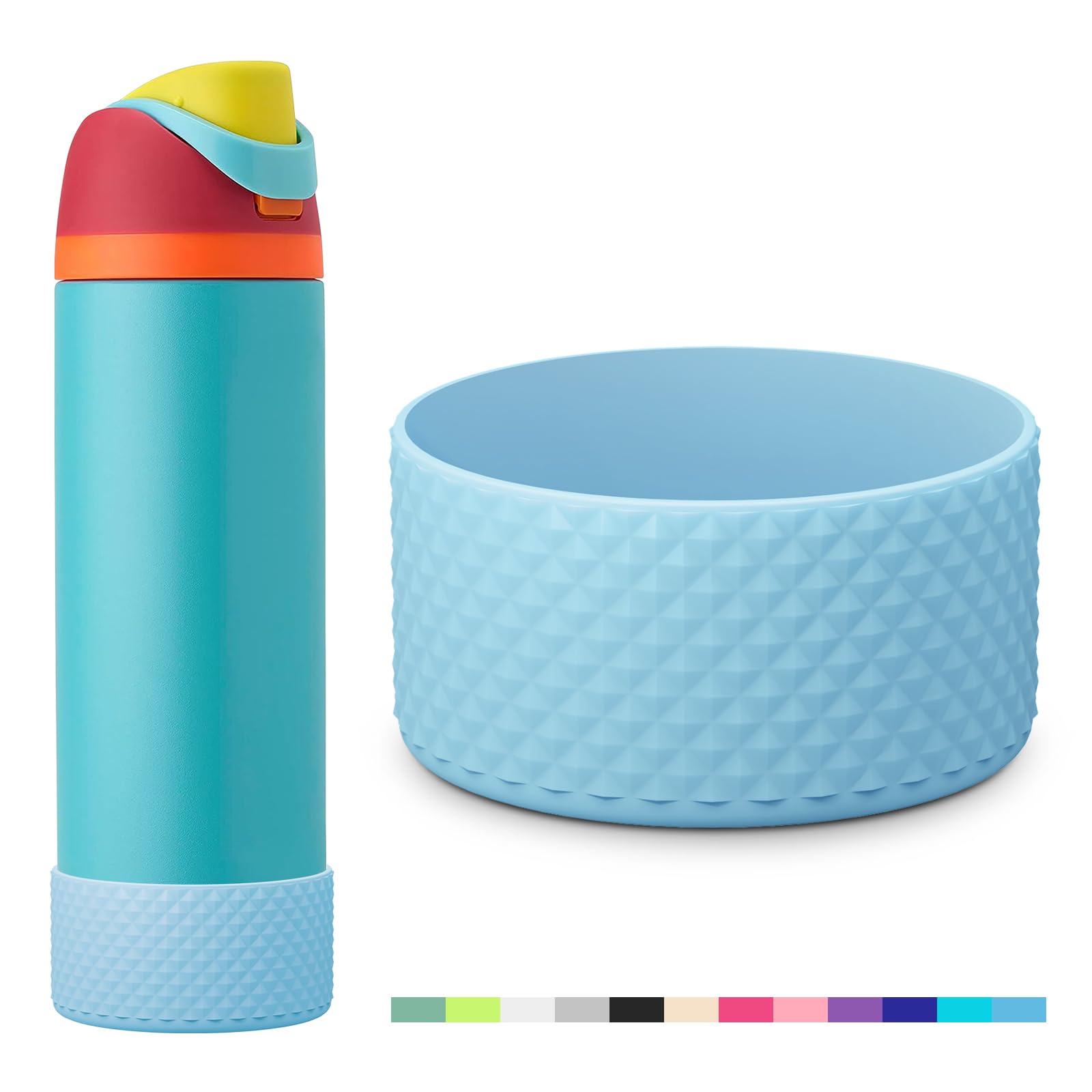 [Fits Perfectly: Silicone water bottle boot sleeve for Owala 24 oz FreeSip Twist or Flip water bottles. Maximum Protection: This durable bottom boot helps protect against dents, dings, and damage. Give your water bottle a longer life. Top Quality: Made of food-grade and stretchy silicone, BPA-free, soft, flexible, odorless, reusable, and durable. Dishwasher safe. Fit Other Brand Bottles: Also compatible with other brands of water bottles that have the same diameter at the bottom, for example, Yeti/IRON FLASK/Hydro Flask/Stanley/Simple Modern, and so on. (Please measure the bottom of the bottle to make sure it fits the boot before you purchase.) Guarantee: If you are not satisfied with our products, please do not hesitate to contact us.